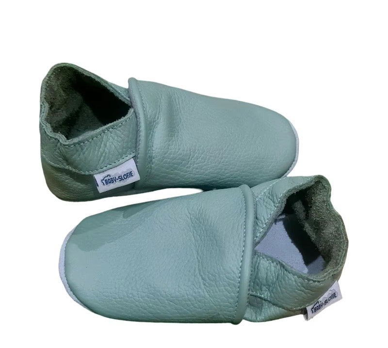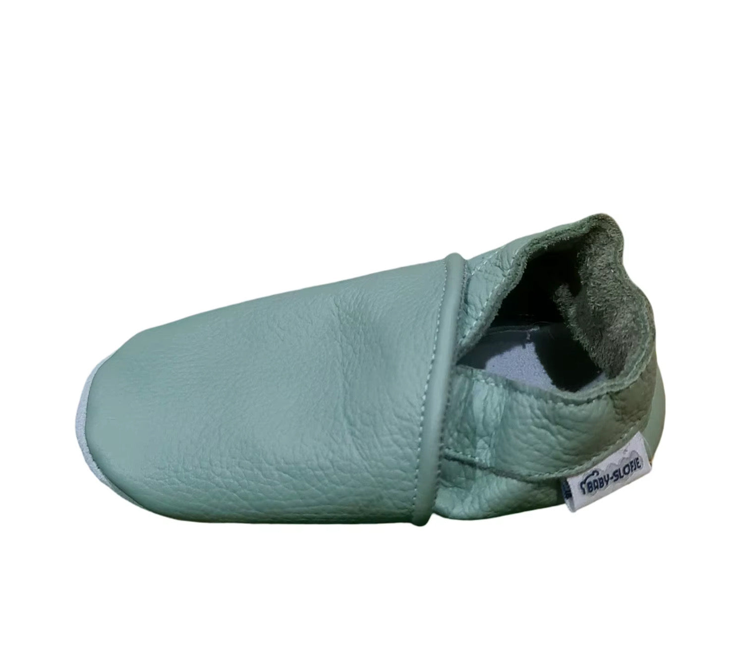 Lichtgroene effen leren babyslofjes van Baby-Slofje