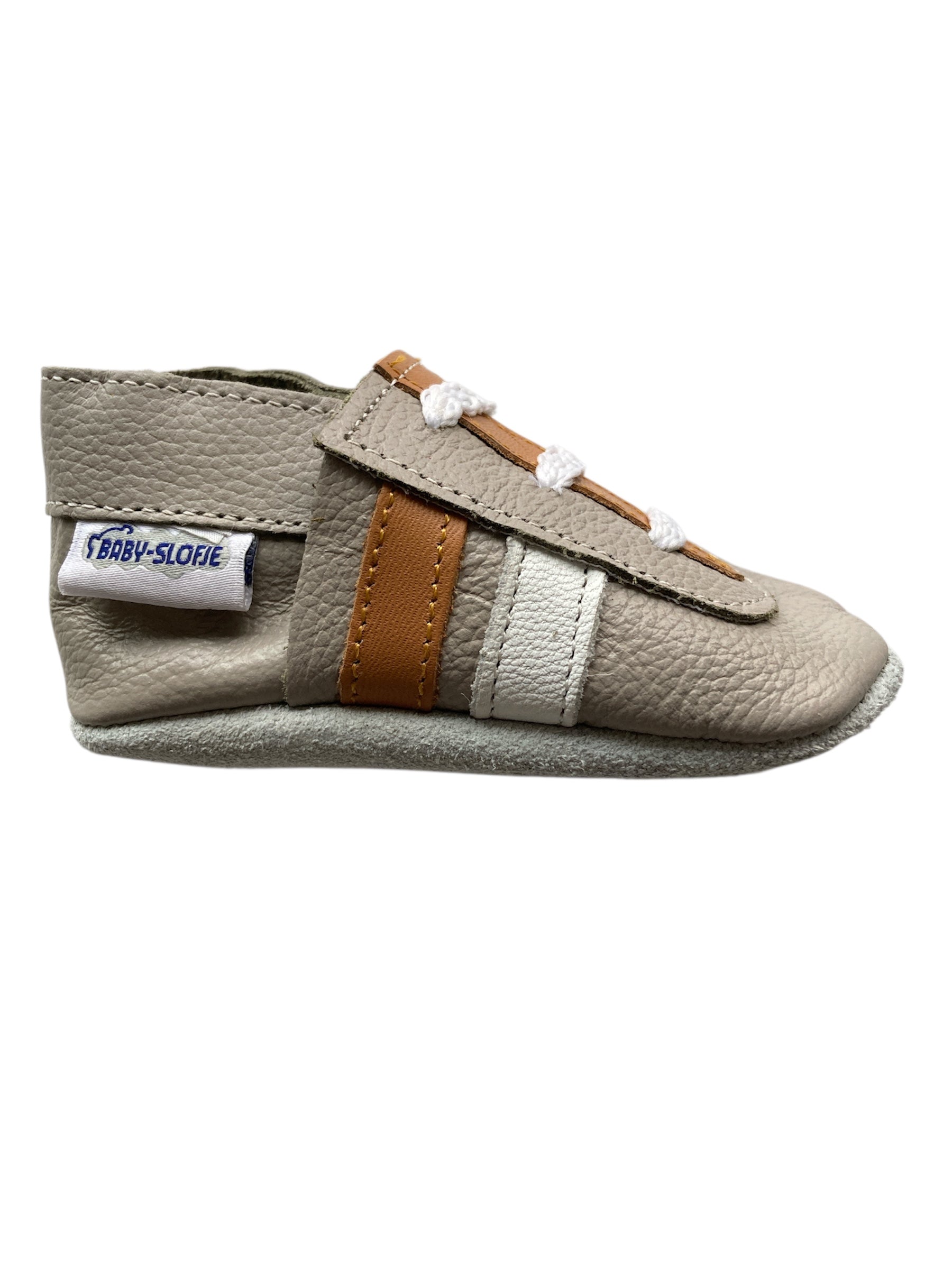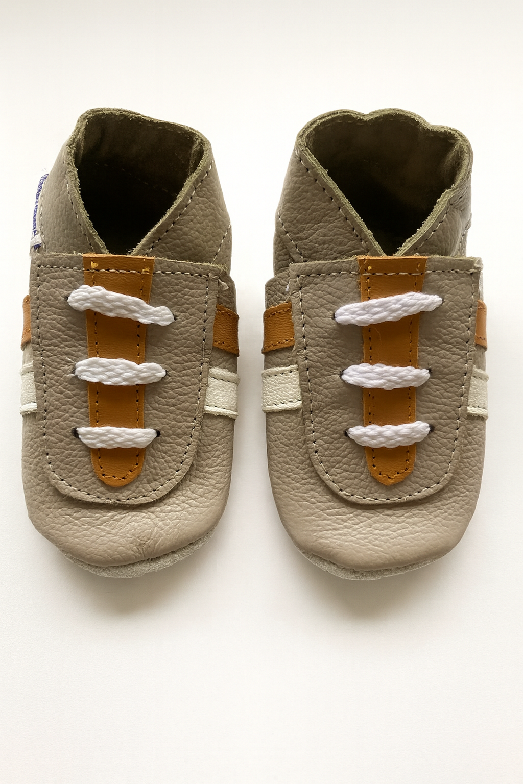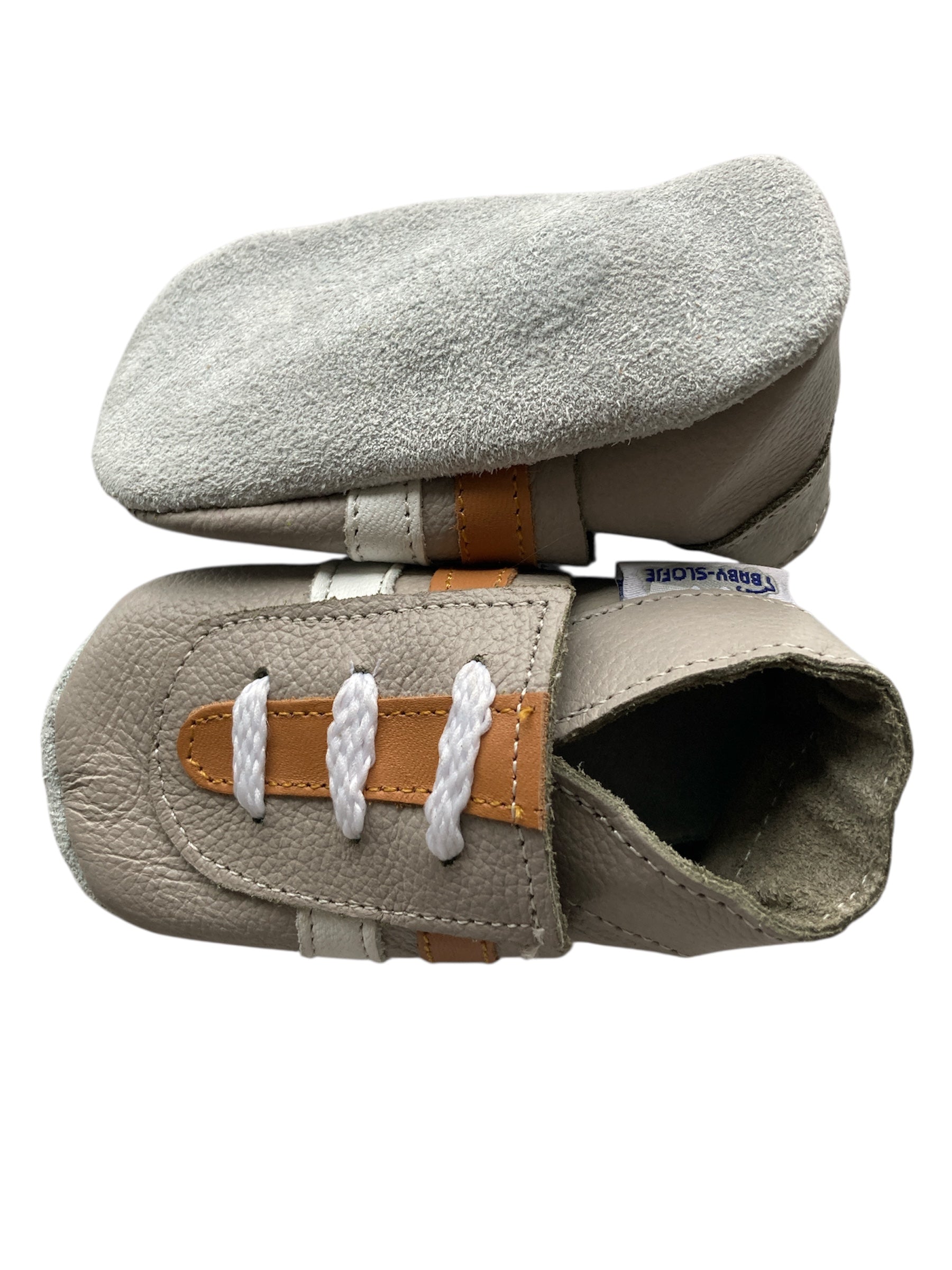 Sportieve grijs leren babyslofjes van Baby-Slofje