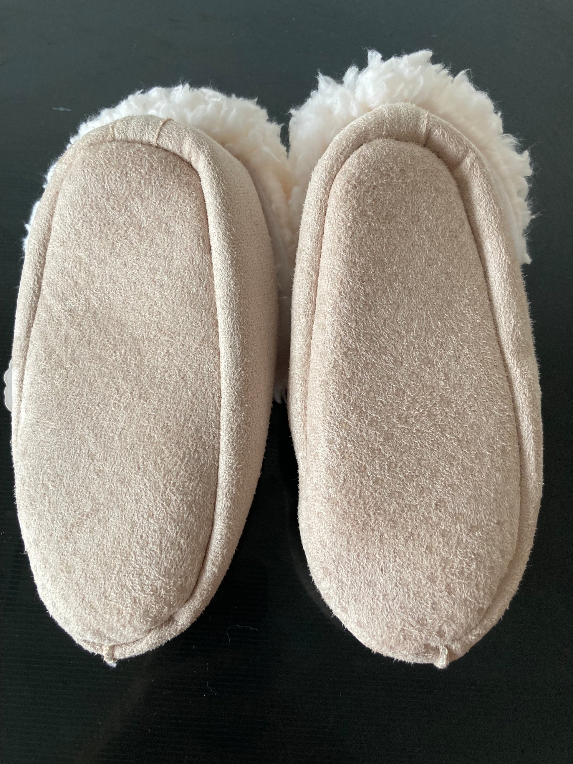 Deze schattige en warme slofjes zijn gemaakt van een zachte, beige suède-achtige stof aan de buitenkant en afgewerkt met een heerlijke, donzige witte fleece aan de binnenkant. Ze bieden optimaal comfort en houden de voetjes van je baby warm tijdens koude dagen.