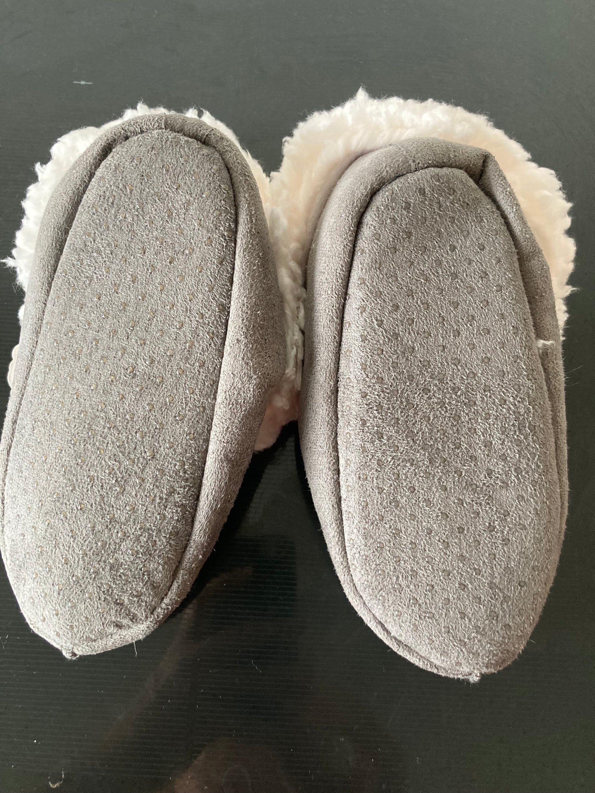 Deze schattige en warme slofjes zijn gemaakt van een zachte, beige suède-achtige stof aan de buitenkant en afgewerkt met een heerlijke, donzige witte fleece aan de binnenkant. Ze bieden optimaal comfort en houden de voetjes van je baby warm tijdens koude dagen.